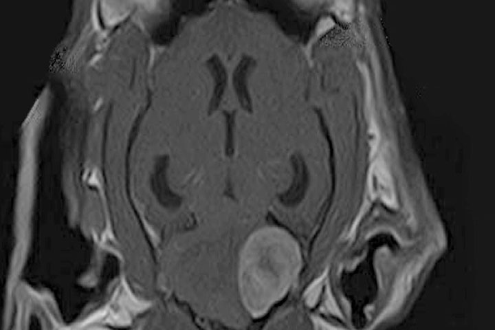 These are slow growing tumours that arise from the skull but can cause severe compression of the brain. Although not primary tumours, they may not be noticed until neurological signs appear. Surgery can be very successful in these cases.