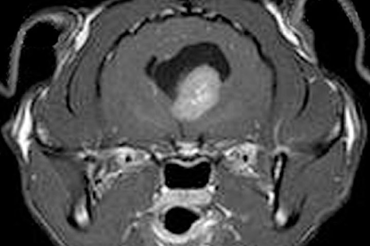 Gliomas are the second most common primary brain tumour in dogs. They are more prevalent in brachycephalic breeds, but rare in cats.